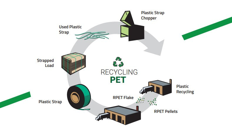 Unlike many single-use plastics, PET straps can go through multiple life cycles, from post-consumer waste to reprocessed packaging material.